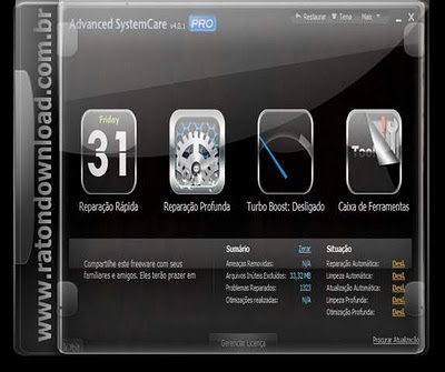 Advanced SystemCare PRO Edição Utilitário do mundo Top Sistema de Saúde PC Superior. Advanced SystemCare PRO (anteriormente avançada WinodwsCare Profissional) oferece uma always-on, automatizado, tudo-em-um PC Healthcare Serviço com anti-spyware, proteção de privacidade, performance tune-ups, sistema de limpeza e capacidades. Esta ferramenta poderosa e precisão premiado corrige erros teimosos, limpa fora desordem, optimiza Internet e download velocidades, garante a segurança pessoal e mantém máximo desempenho computador automaticamente.